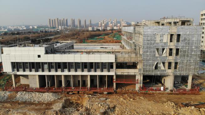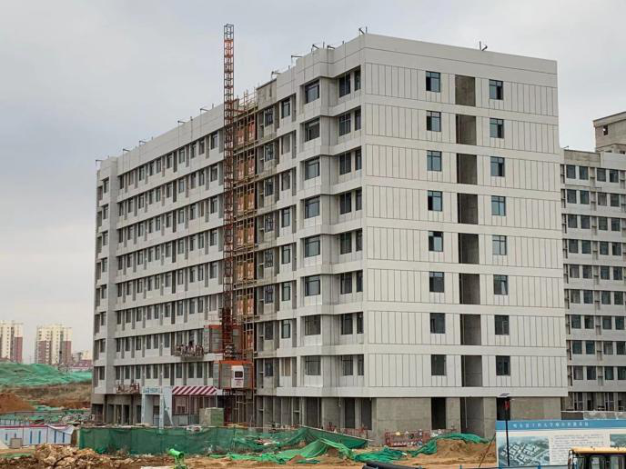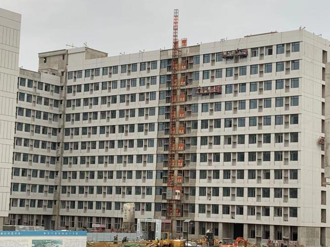 完成北楼窗玻璃安装建设;南楼屋面防水施工正在进行外幕墙施工建设。