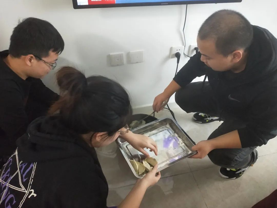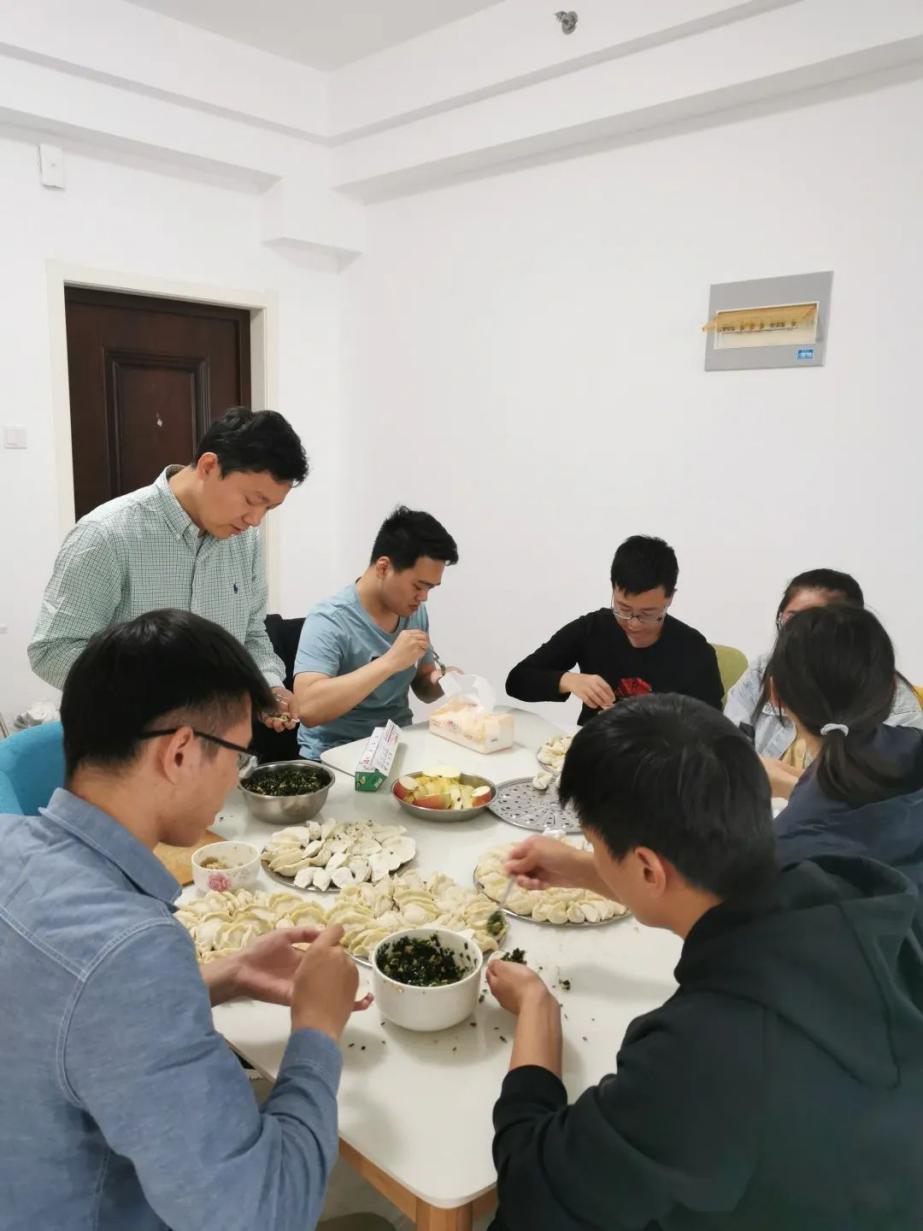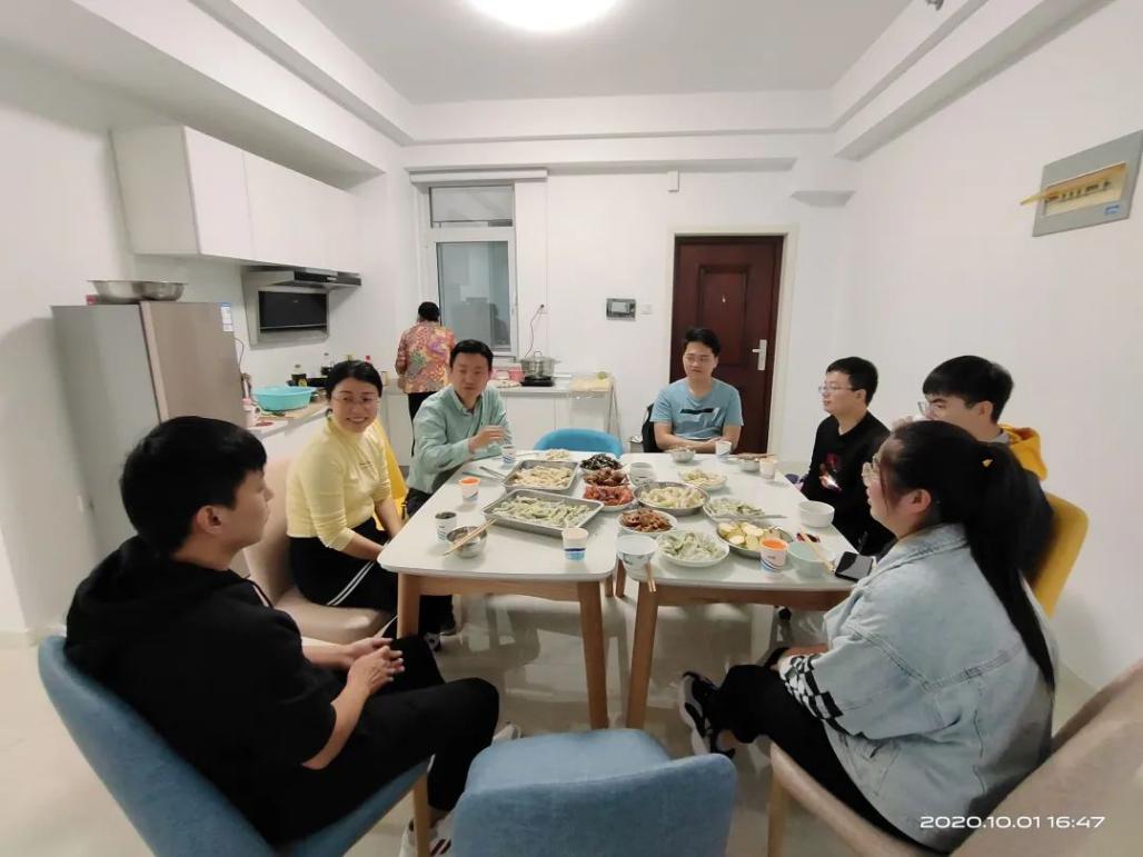 在举国庆祝中秋国庆双节之际,因紧张的课程和课题研究安排,学生无法离开校园。为庆祝双节,加强师生感情交流,10月1日下午,烟台研究院核化工与应用电化学团队的学生在颜永得、薛云老师家中开展以包饺子活动为主题的“庆中秋迎国庆暨师生见面会”活动。