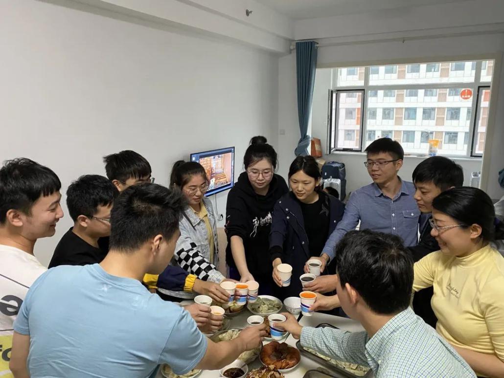 颜永得老师表示,十分高兴能够和大家有缘分在烟台相聚,团队是一个团结的大家庭,希望同学们之间能相互交流,相互促进,在大家庭里共同成长。他还讲到,本世纪只有四次双节,同学们能够在今天度过这个节日,一定有特别的缘分,希望同学们共同珍惜。随后,大家愉快地享用了这顿“缘分之宴”,师生也进行了学习生活等方面的交流,同学们感受到了来自团队老师的亲切关怀。