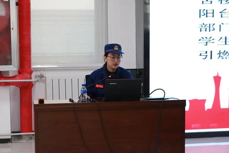 随后,解教官围绕典型火灾案例、校园常见火灾、逃生自救知识、开展消防检查等方面给师生进行了消防安全讲座。